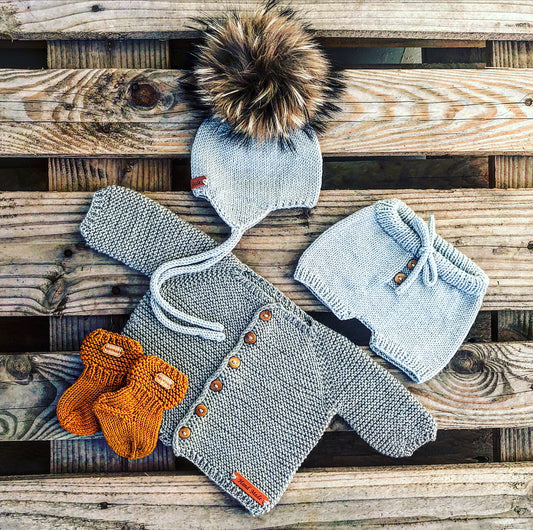 Die Kollektion "Ari" umfasst verschiedene kleine Strickstücke für Babys, von Neugeborenen bis 2 Jahre. Sie ist perfekt für Neugeborene, für die ersten Ausflüge in die Welt und natürlich für wunderschöne Babyfotos!