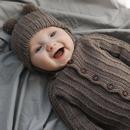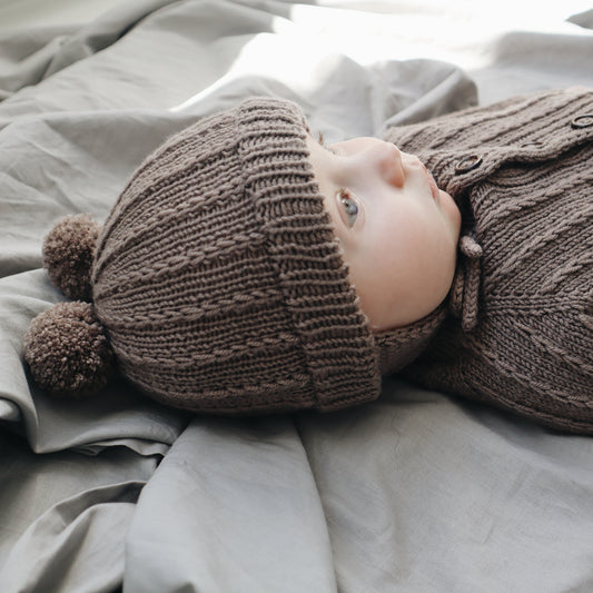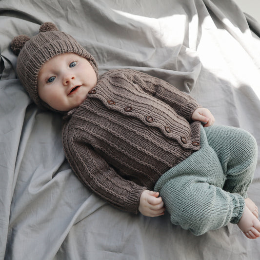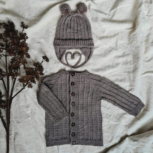 "Nacht für Nacht" ist der Name unserer Kollektion aus Raglanpullovern, Mützen, Jacke und Hose mit Hebemaschen.